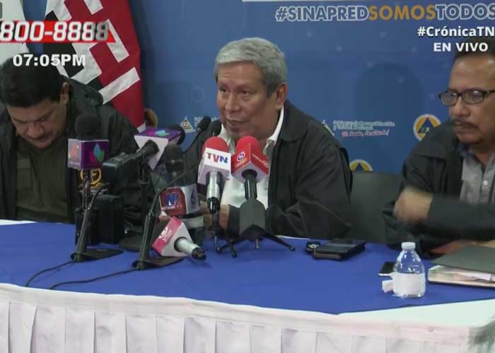 Autoridades de SINAPRED e INETER brindaron conferencia de prensa el miércoles a las 6:50 pm sobre el fenómeno Eta, en su trayecto de salida de Nicaragua rumbo a Honduras.
