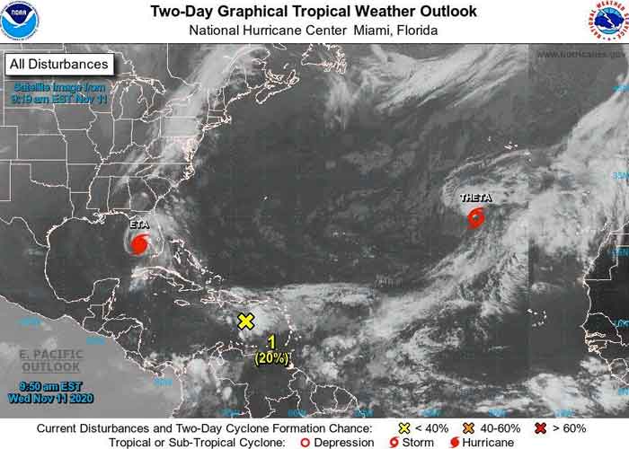 El Centro Nacional de Huracanes de los Estados Unidos, pronostica que tiene un 80% de probabilidad que se desarrolle a una Depresión Tropical a finales de esta semana, pudiendo formarse entre el Norte de Colombia y Sur de Jamica / Haití.
