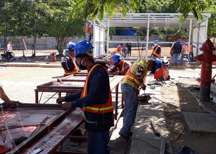 Esta obra se está llevando a cabo en los talleres del MINED en la Escuela Normal Alesio Blandón, en Managua, donde trabajadores construyen aulas resistentes donde se atenderán a 30 alumnos de primaria.