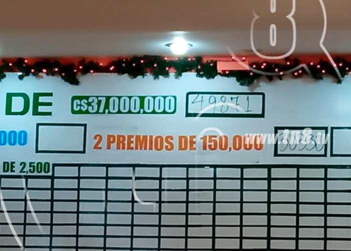 Un premio de 1 millón de córdobas lo obtuvo el billete 16352, el premio de 500 mil favoreció al billete 50062, un premio de 250 mil
