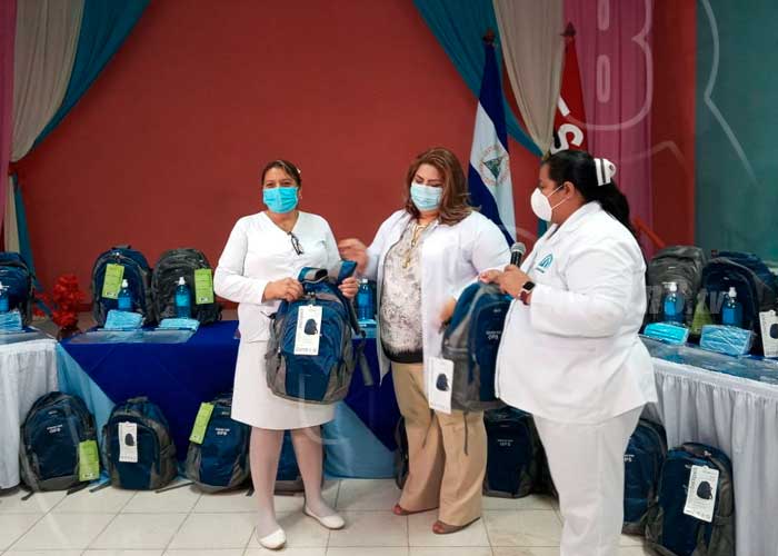 "Esto es con el objetivo de que ellos salgan al terreno con sus medios de protección completos para visitar a las familias nicaragüenses, y lo que son las mochilas están equipadas con alcohol, alcohol gel, mascarillas y caretas faciales que les va a permitir a los enfermeros y enfermeras protegerse", indicó la Dra. Verónica Medica, jefa de enfermería del SILAIS Managua.