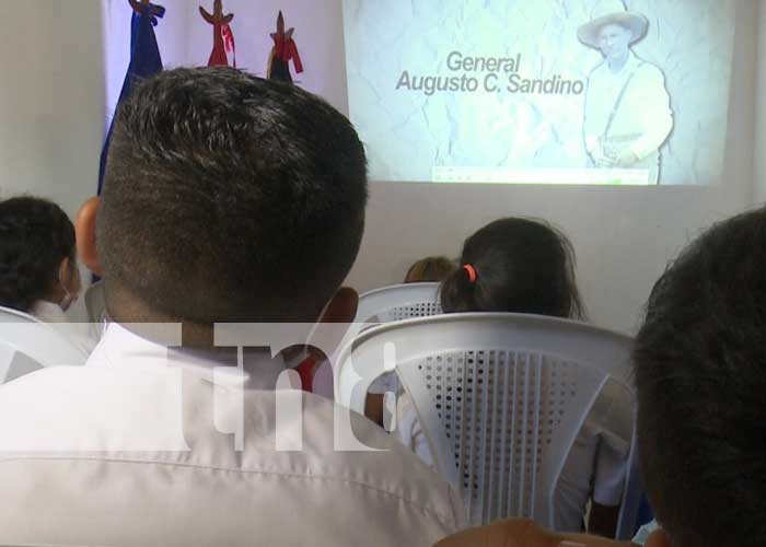 “El día de hoy como parte de las diferentes jornadas que estamos realizando en homenaje a nuestro gran General, decidimos compartir este pequeño espacio de reflexión y análisis con estudiantes que creemos que es muy importante, el hecho de poder acercar a los jóvenes a que puedan conocer más sobre la gesta del General, que ellos puedan conocer la historia del General Sandino que obviamente es parte de la historia de Nicaragua”, indicó Elvin Gómez, director de investigación del MINJUVE.