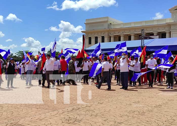 En esta actividad estudiantes, combatientes históricos y trabajadores de las instituciones, rindieron tributo con la bandera de la alfabetización y de Nicaragua para recordar la fecha histórica del inicio de la Cruzada Nacional de la Alfabetización.