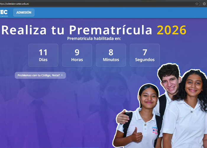 Las prematrículas se realizarán en línea, a través del portal de la Secretaría Técnica de la Educación Superior (SETEC), en el enlace admision.setec.edu.ni, permitiendo que los bachilleres, jóvenes, mujeres y adultos puedan inscribirse desde sus celulares, computadoras o tabletas, desde cualquier municipio o comunidad del país.