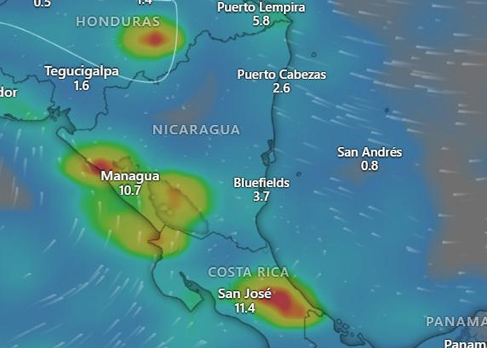 Además, se pronostican condiciones de mal tiempo para los litorales del Caribe y del Pacífico de Nicaragua a partir del jueves.