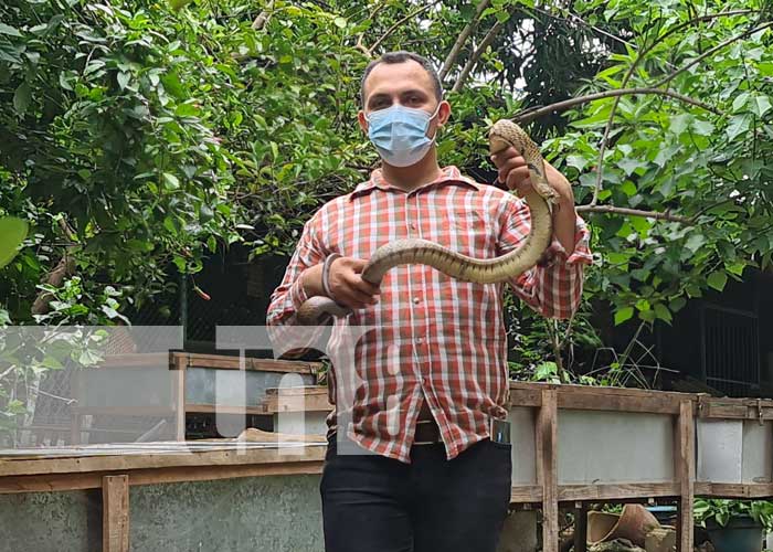 David Romero es un joven amante a las especies exóticas, es por eso que desde hace 5 años inició con la idea de montar un atractivo de variedad de reptiles para turistas nacionales y extranjeros en Nicaragua.