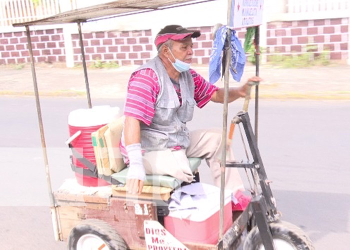 Recorre las calles de Managua ofreciendo atoles, manuelitas y arroz con leche, pero su venta trae algo más que sabor: una palabra de bendición para cada persona que se cruza en su camino, incluso para quienes no pueden comprarle.