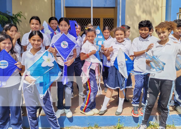 Como parte de las fiestas patrias en muchos colegios de Nicaragua, están realizando dinámicas diferentes, entre ellas elevar los barriletes del color de la bandera del país centroamericano.