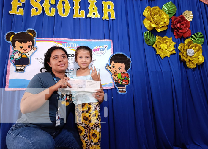 Del 20 al 25 de enero, más de 500 mil niños y niñas de preescolar, primero y segundo grado a nivel nacional empezaron a recibir el bono escolar equivalente a 2 mil córdobas para la compra de útiles escolares.