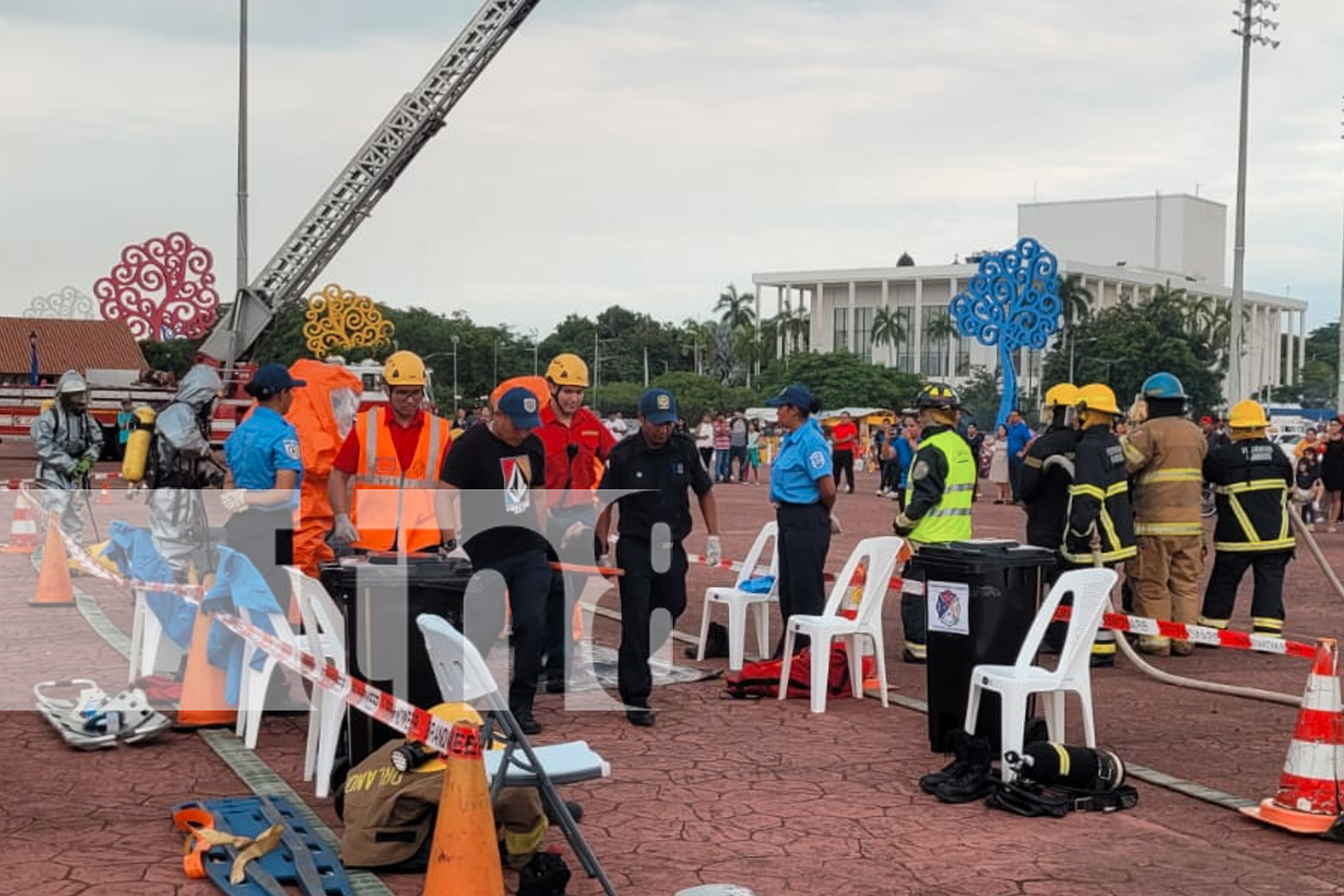 «Estamos compartiendo nuestra experiencia como Bomberos Unidos, principalmente en la celebración de los 45 años de nuestro glorioso Ministerio del Interior y la Policía Nacional. Hoy estamos en esta hermosa plaza, el Paseo de los Estudiantes; demostrando los distintos equipos con los que atienden a las familias nicaragüenses”, comentó el Comisionado Lenín Quiroz, Subdirector General de Bomberos Unidos.