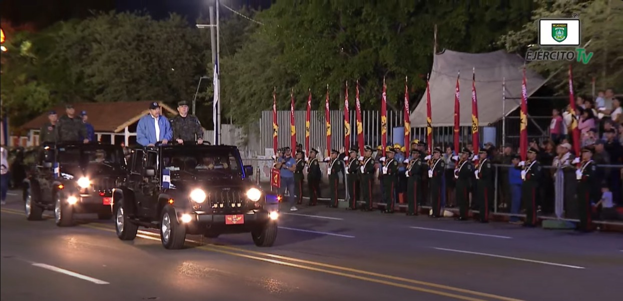 El CoPresidente de Nicaragua, Daniel Ortega, junto a la CoPresidenta Rosario Murillo, participó en el desfile militar por el 46 aniversario del Ejército de Nicaragua; donde recordó gestas históricas y el papel del Ejército en la paz y la seguridad nacional.