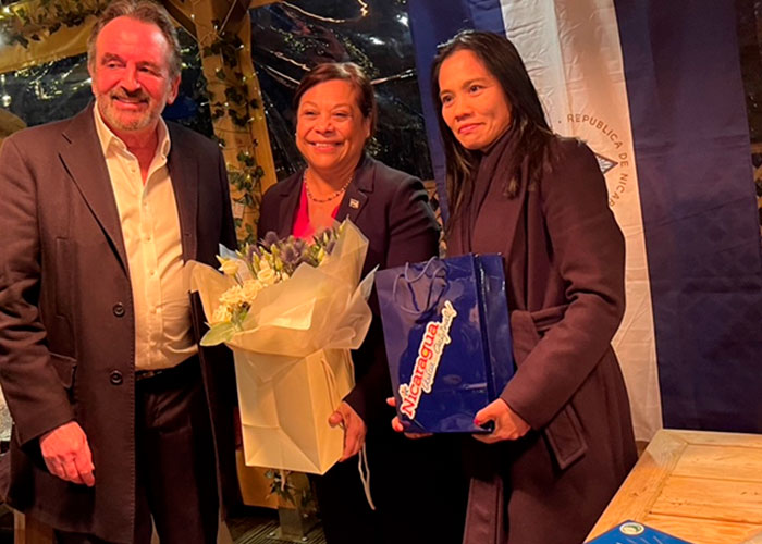 El Señor James Barber y su esposa Rosalind, expresaron su compromiso de seguir ofreciendo a sus clientes los mejores puros del mundo, al recibir de manos de la Embajadora de Nicaragua, Compañera Guisell Morales Echaverry, un presente de nuestra tierra, en reconocimiento como ganadores del concurso “200: Vistiendo los colores de Nicaragua” en el que participaron 40 tiendas y salones de puros de Gran Bretaña, exponiendo nuestros puros y productos nacionales y decorando sus tiendas y sitios web y cuentas de redes sociales, como Instagram, con los colores de nuestra bandera y artesanías de nuestra Patria.
