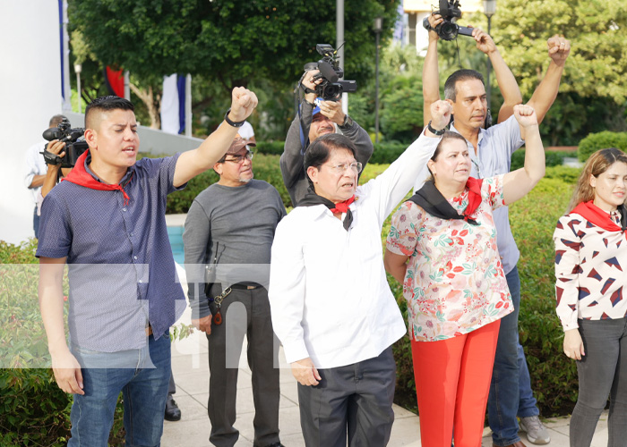 Con profundo respeto y admiración, depositaron flores en memoria de este destacado líder revolucionario; cuyo legado perdura como símbolo de la lucha por la justicia y la equidad en Nicaragua.