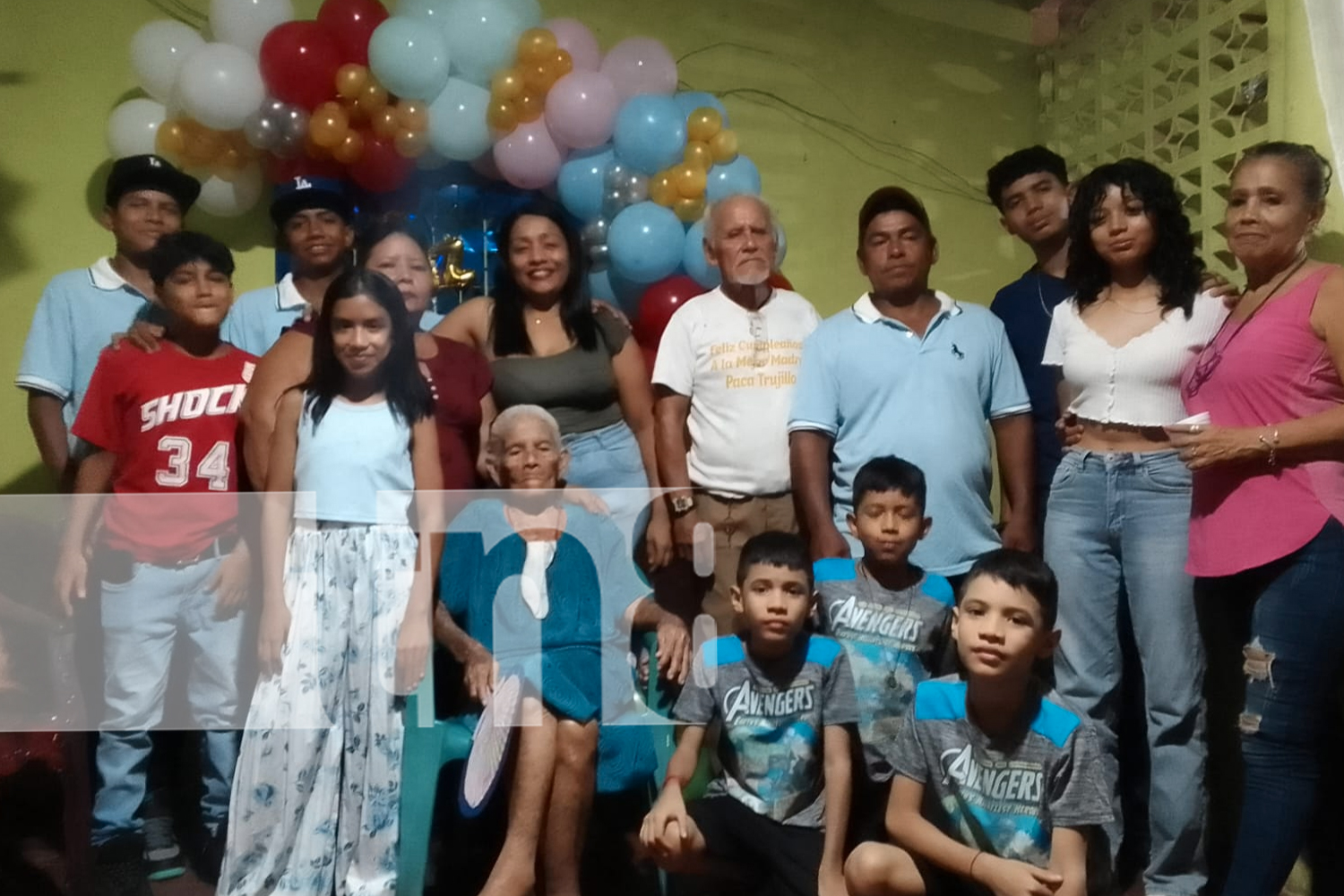 Desde su casa de habitación en la calle “El Bolsón”, de la ciudad de Granada, con serenata, pastel, flores y mucho amor, doña Francisca Rosa Trujillo, celebró sus 102 años de vida, la noche de este 7 de abril, en compañía de sus hijos, nietos y bisnietos, quienes organizaron esta celebración para agradecer a Dios y regocijarse en familia por su vida fecunda y bendecida.