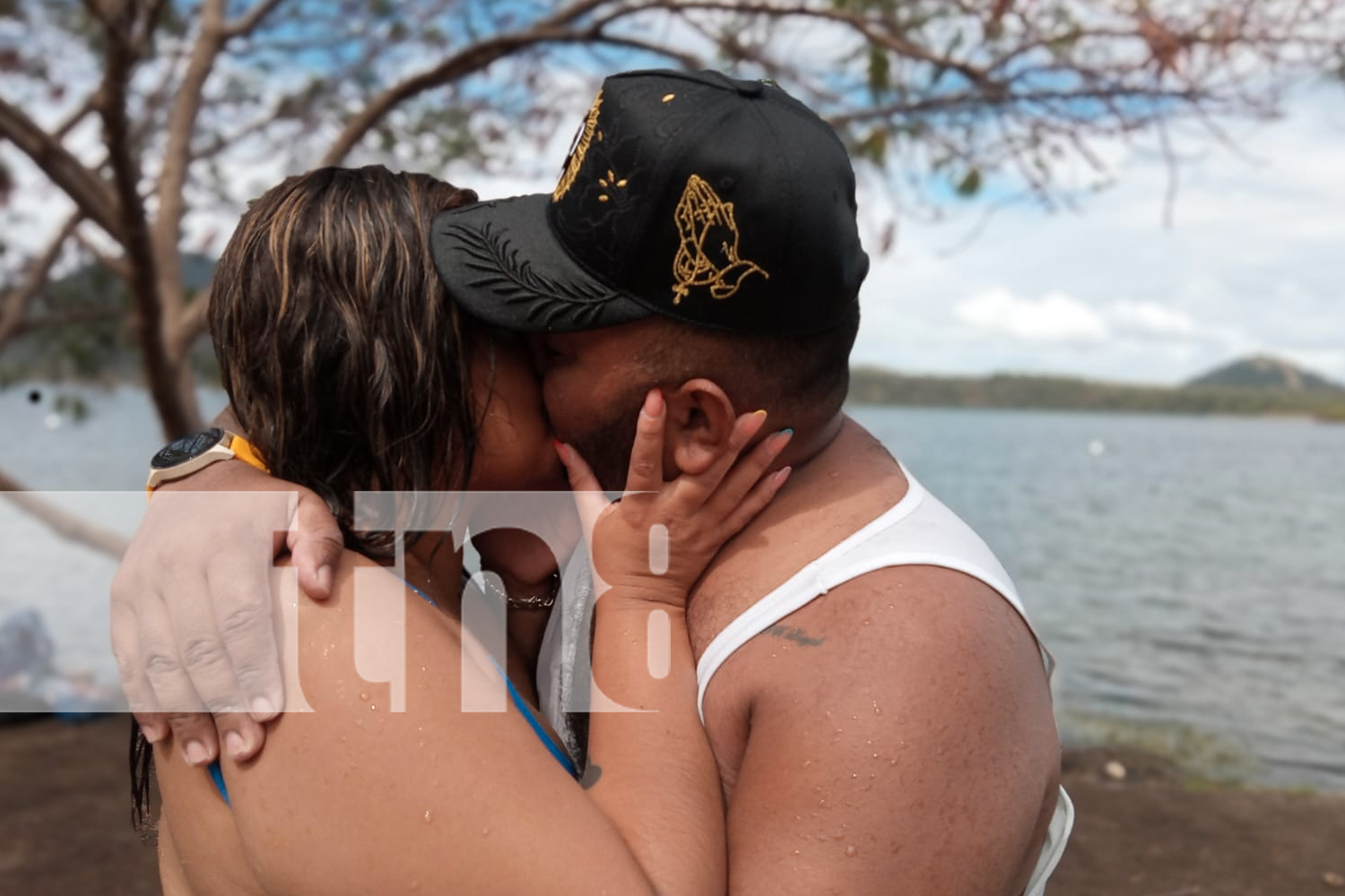 Jeferson Hurtado, originario de Jinotega, llevó a su esposa a pasear a Xiloá y aprovechó la oportunidad para darle un beso «carameleado».