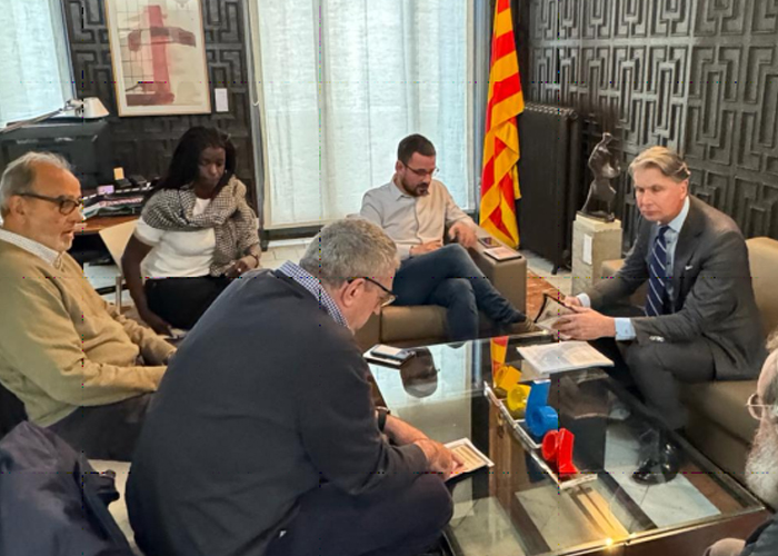 El Compañero Embajador Maurizio Gelli también mantuvo un encuentro con algunos Compañeros de la Solidaridad en Cataluña como fue el Compañero Martí Fasferrer de la Comisión de Hermanamiento, el compañero Jordi Planas de la Agenda Latinoamericana y los Compañeros Jaume Soler y Neus Gómez del Comité Europeo de Solidaridad con la RPS, quienes le informaron sobre la cooperación vigente con Nicaragua y participaron en el encuentro con el Alcalde de Girona.