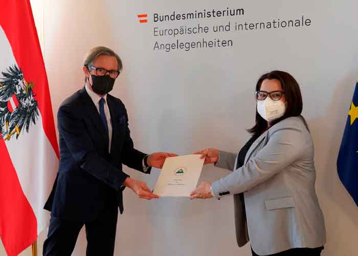 Dicha presentación se llevó a cabo en el Ministerio Federal de Asuntos Europeos e Internacionales de Austria; acompañados del Embajador Enno Drofenik, Jefe de Protocolo, y el Señor Andreas Rendl, Director del Departamento para las Américas.