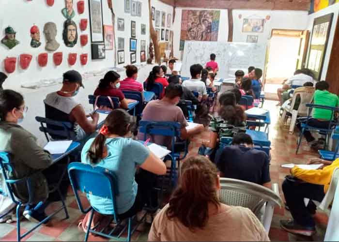 Con júbilo, interés, rendimiento, disciplina y ganas de aprender el Arte del Dibujo, 46 Niños, Niñas, Jóvenes y Adultos del Heroico y Emblemático Monimbó, participan en el Taller de Dibujo, incursionando en esta disciplina para llegar a dominar y crear obras para su formación como Artistas.