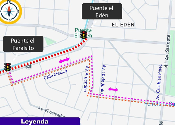 Ruta 111: También en el tramo IV, fase 1 (Desvío El Edén), el ingreso se realizará en Lubricentro Charlie, siguiendo por Barrio María Auxiliadora y Calle México hasta los semáforos de El Paraisito en ambos sentidos.