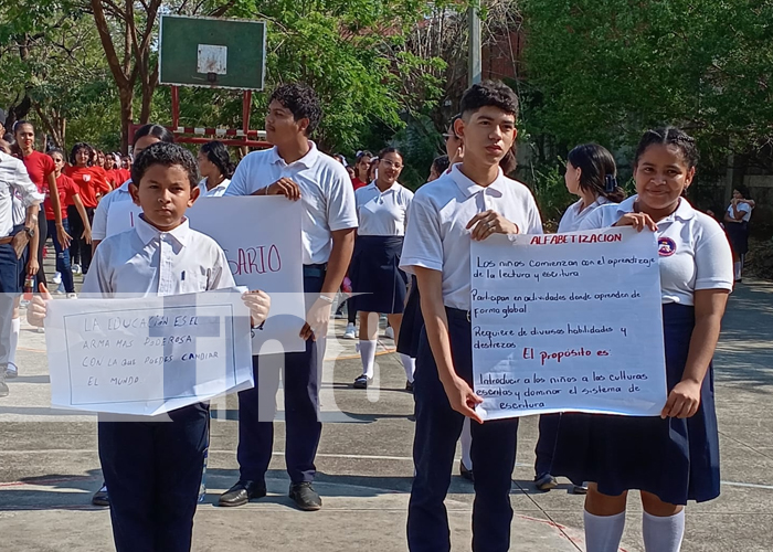 «Nuestro buen Gobierno nos manda libros educativos, nuestra educación es gratuita y que hoy estamos conmemorando el 44 aniversario de la Gran cruzada de Alfabetización y yo les digo a los chavalos que se pongan las pilas con estudiar, pónganse al día; ya que el gobierno nos da la oportunidad de forma gratuita».