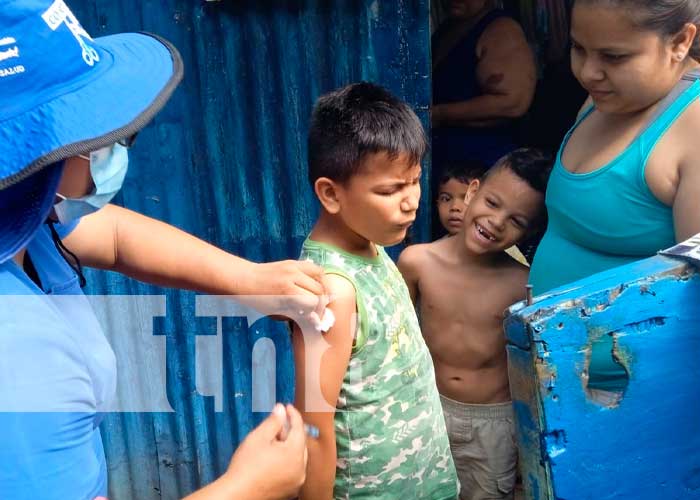 Las familias del barrio 18 de Mayo, Distrito V, Managua abrieron las puertas de sus hogares a brigadistas del centro de salud Carlos Rugama, quienes con amor y entrega aplicaban la vacuna a niños, adultos y mujeres embarazadas en este populoso barrio.