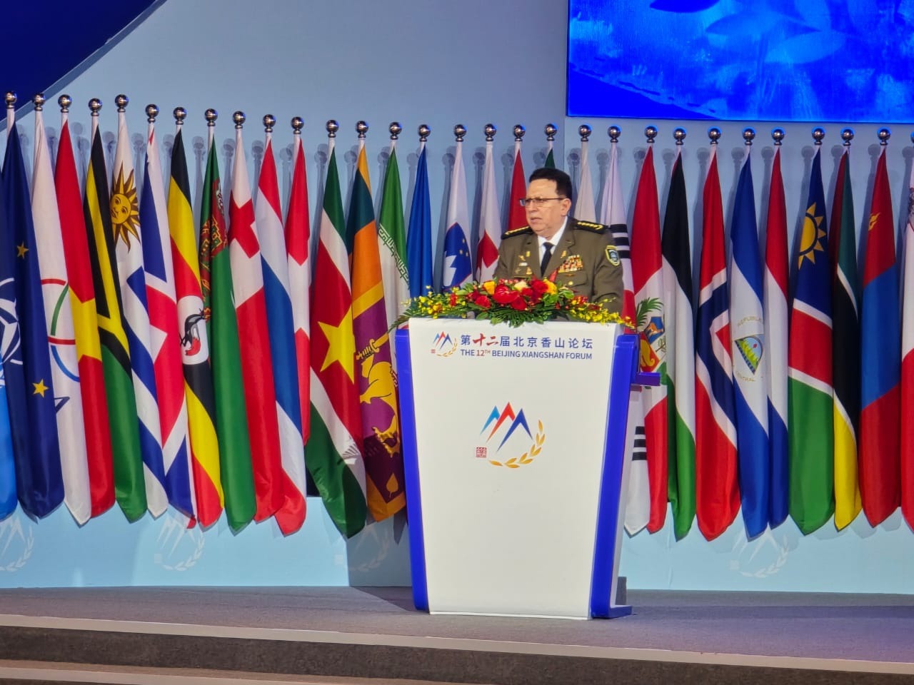 El General de Ejército Julio César Avilés Castillo, manifestó su agradecimiento por haber sido invitado al XII Foro de Xiangshan, reafirmando que compartimos plenamente las aspiraciones de un mundo seguro, en paz y de desarrollo con beneficios compartidos.