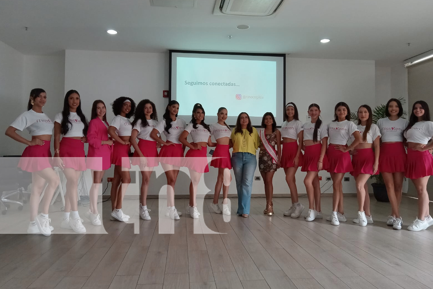 Una importante charla bajo el título “Lidera con tu voz” recibieron las 16 candidatas a reinas de Miss Teen Nicaragua 2025, de parte de Gilda Tinoco, gerente regional de Relaciones Públicas, Comunicación y Sostenibilidad de Claro Centroamérica.