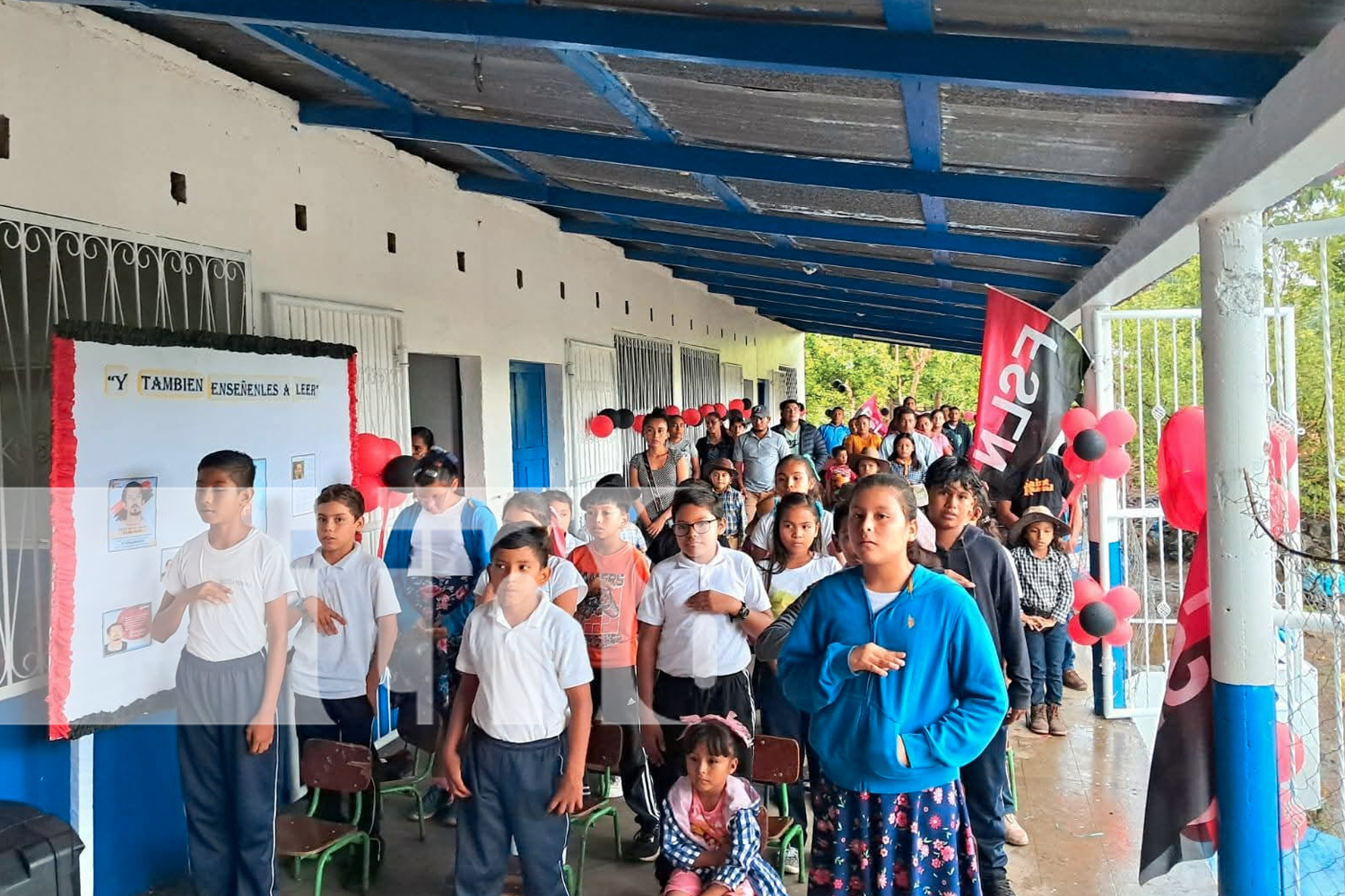 Ni la lluvia detuvo el acto de entrega de las mejoras en un colegio de la Isla de Ometepe, esta tarde el Gobierno de Nicaragua entregó a la comunidad educativa de la comarca San José del Norte, mejoras significativas que brindarán un espacio más bonito, seguro y digno para los más chiquitos, que a diario acuden a este centro primario para recibir el pan de la enseñanza.