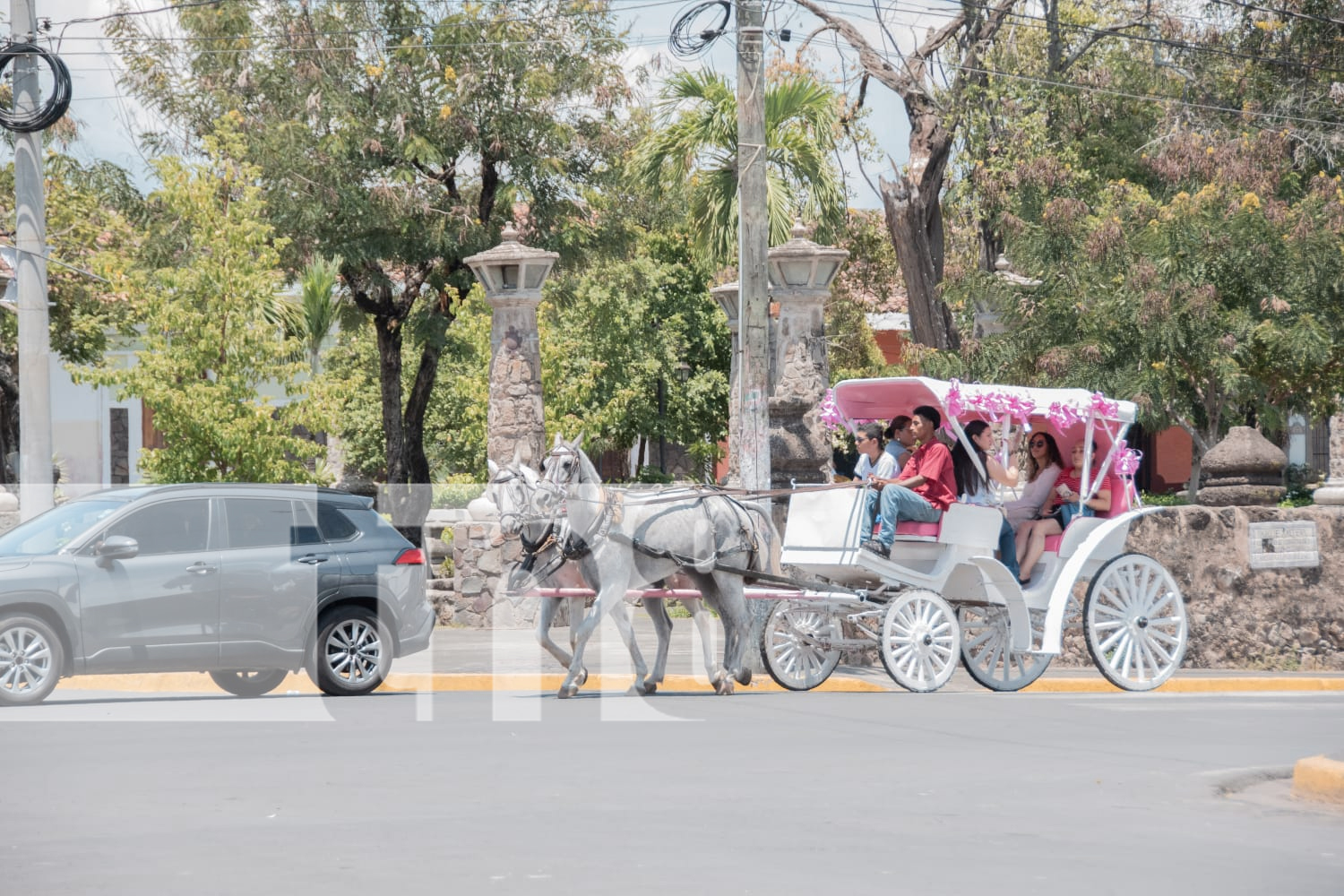 En el Parque Central de Granada, otro punto de gran concurrencia de turistas, se pudo observar un notable movimiento de familias recorriendo a pie la Calle La Calzada, la Plaza de la Independencia y el parque central, contratando también los servicios de los aurigas que ofrecen tours por la ciudad en los tradicionales coches granadinos.
