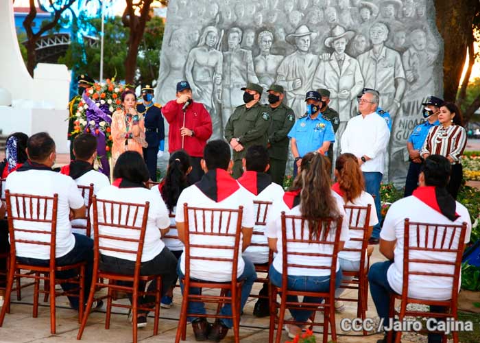 «Ellos conducen las luchas que hoy sigue librando el pueblo nicaragüense, simplemente para que nos dejen vivir en paz. Esa es nuestra lucha, que nos dejen vivir en paz para seguir desarrollando todas las obras, todos los programas, todos los proyectos»; continuó.