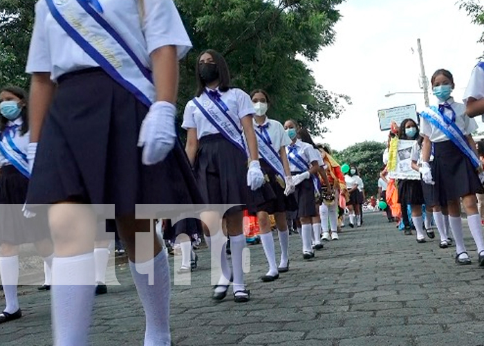 Llenos de entusiasmo, amor y responsabilidad cívica, estudiantes del Colegio Gaspar García Laviana, en el distrito II de Managua, dieron inicio al Primer Desfile de las Fiestas Patrias 2021.