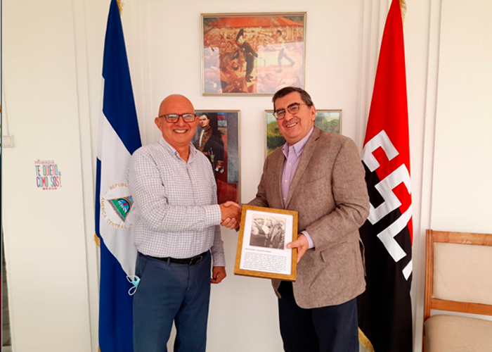 Ayer viernes 14 de mayo, el Hermano Embajador de México en nuestro País, Gustavo Alonso Cabrera, fue recibido por el Compañero Luis Morales Alonso, Director del Instituto Nicaragüense de Cultura, INC, donde intercambiaron sobre las relaciones Históricos y Culturales que unen a nuestros Pueblos Hermanos, y el fortalecimiento de la Cooperación Cultural entre nuestros Países.