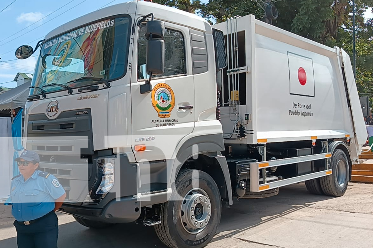 Un camión nuevo recolector y compactador de desechos fue entregado a la municipalidad de Bluefields por parte del Gobierno y Pueblo de Japón; la tarde de este miércoles 23 de abril, a través del embajador de Japón en Nicaragua, Masahiro Ogino.