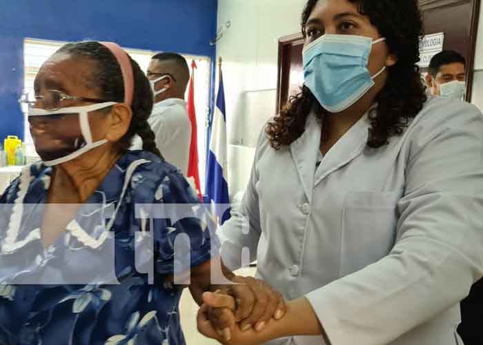 Adultos mayores de 60 años acudieron este martes al Hospital Alemán Nicaragüense ubicado en el Distrito VI de Managua. El objetivo es la aplicación de la segunda dosis Covishield en contra de la enfermedad del coronavirus.