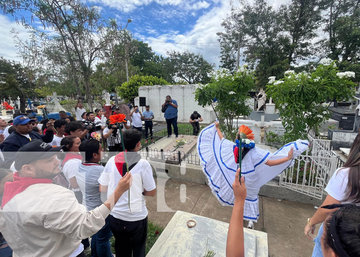 Miembros destacados de la Juventud Sandinista se reunieron en el Cementerio General de Managua el 30 de mayo para rendir un emotivo homenaje a la memoria de Doña Lidia Saavedra; ejemplo de madre revolucionaria.