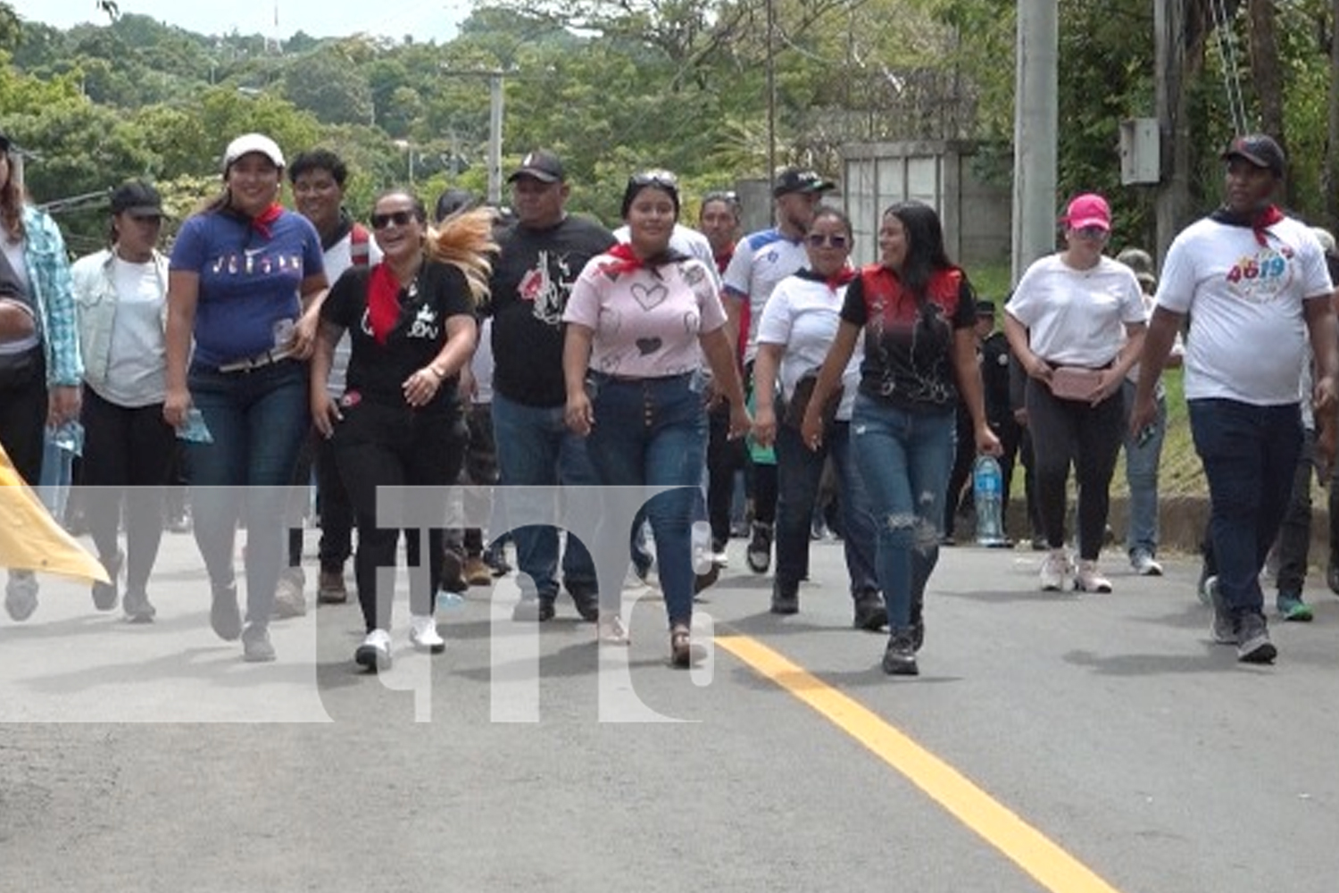 La caminata hacia la emblemática Hacienda El Vapor, lugar que en 1979 fue escenario de una reorganización clave del Frente Sandinista en la recta final hacia el triunfo de la Revolución Popular Sandinista.