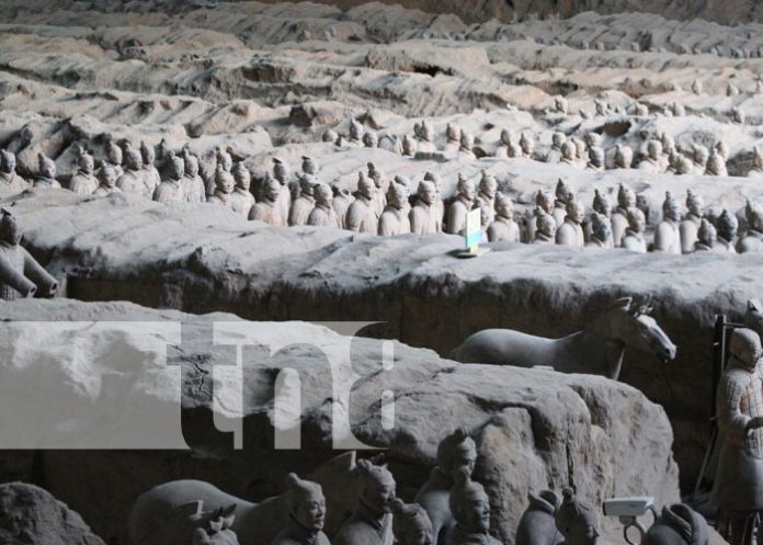 En la primera fosa encontramos más de 1,300 figuras de soldados, aunque actualmente no hemos excavado todas las figuras. Quizás haya más de 6 mil figuras en total, pero si abrimos otras fosas podría haber más de 8 mil soldados de terracota. La superficie total de este mausoleo equivale a 63 ciudades prohibidas, aseguró la guía turística.