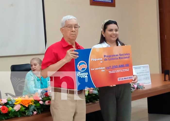 La licenciada Laura Ramírez, directora país de LOTO Nicaragua señaló que en los 11 años de haber iniciado operaciones ha entregado más de 746 millones de córdobas al IND y MIFAN a través de Lotería Nacional. Y hoy entregó al gerente de Lotería Nacional un cheque por 7 millones 250 mil 686 córdobas.