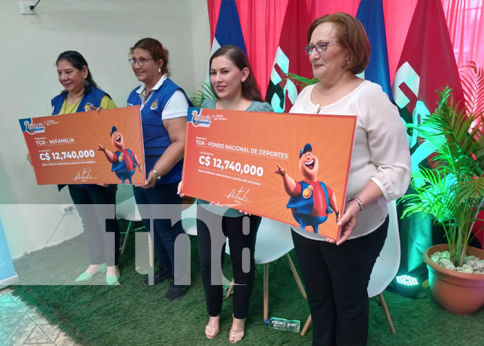 En este mes de febrero, se alcanzó la cifra de 50 millones 960 mil córdobas en total. Se entregaron cheques por 12 millones 740 mil al IND y otro cheque por 12 millones 740 mil para el MIFAN.