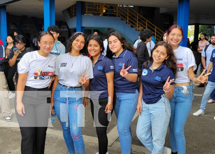 Desde tempranas horas, los nuevos estudiantes llegaron a las instalaciones de la universidad, donde fueron recibidos y acompañados por compañeros de la Unión Nacional de Estudiantes de Nicaragua, que celebran este inicio de curso lectivo 2025 con actividades recreativas y juegos.