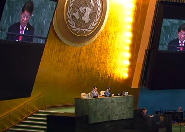 Denis Moncada presentando la voz del país en la asamblea de la ONU