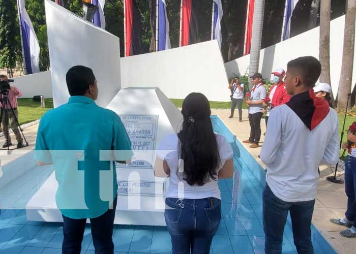 Al parque central de Managua llegaron los integrantes del Consejo Nacional de Juventud, para depositar una flor en el Mausoleo de los Comandantes; donde también descansan el Coronel Santos López y Tomás Borge Martínez, miembro fundador del Frente Sandinista de Liberación Nacional.