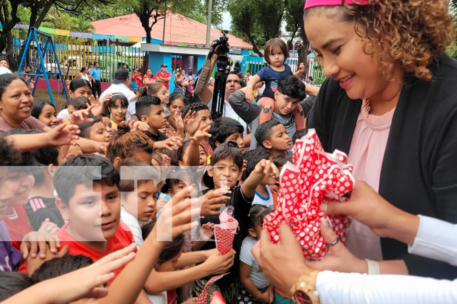 «Pues mire, me siento muy alegre, muchas gracias porque ya van a tener los niños donde jugar, gracias al comandante. Tengo mis nietos y ellos van a venir a jugar ya todo aquí nos sentimos muy alegres; gracias al comandante Daniel Ortega«, expresó la protagonista, Sonia Castro.