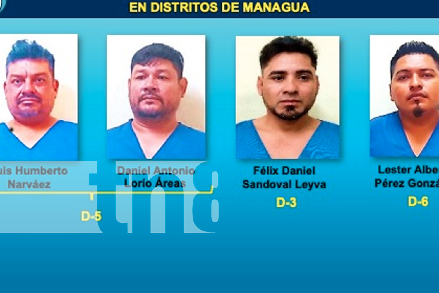 “En el marco de la lucha contra el tráfico de drogas, hemos detenido a cuatro abastecedores en distintos distritos de Managua: dos en el distrito 5, Luis Humberto Narváez y Daniel Antonio Lorio Arias; uno en el distrito 3, Félix Daniel Sandoval; y otro en el distrito 6, Lester Alberto Pérez. A estos se les decomisaron 93 gramos de marihuana, 300 gramos de cocaína, seis teléfonos celulares; un automóvil y dinero en efectivo proveniente de la venta de drogas”, detalló Vanegas.