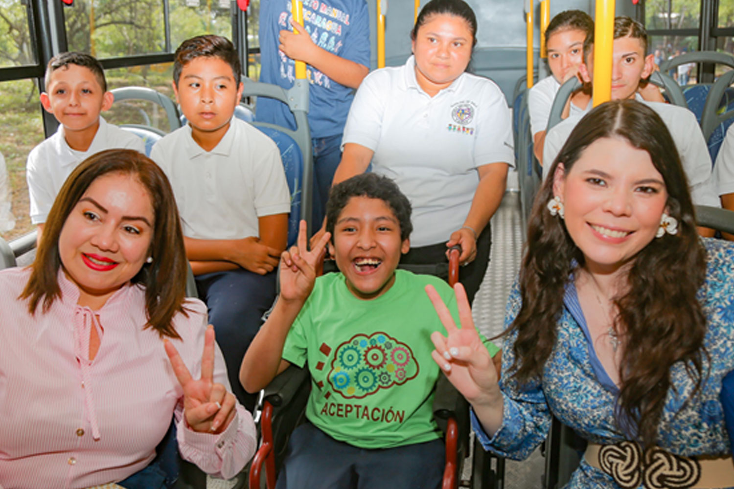 La Escuela de Educación Especial Melania Morales, en Managua, recibió cinco nuevos autobuses para el transporte de 534 estudiantes, en un evento que contó con la presencia de la Ministra Mendy Arauz y Camila Ortega. Esta dotación, con una inversión de 36,077,533 córdobas, incluye unidades adaptadas con tecnología de accesibilidad, como rampas automáticas y espacios para sillas de ruedas, garantizando un traslado seguro y cómodo para los niños y adolescentes que asisten a la escuela.