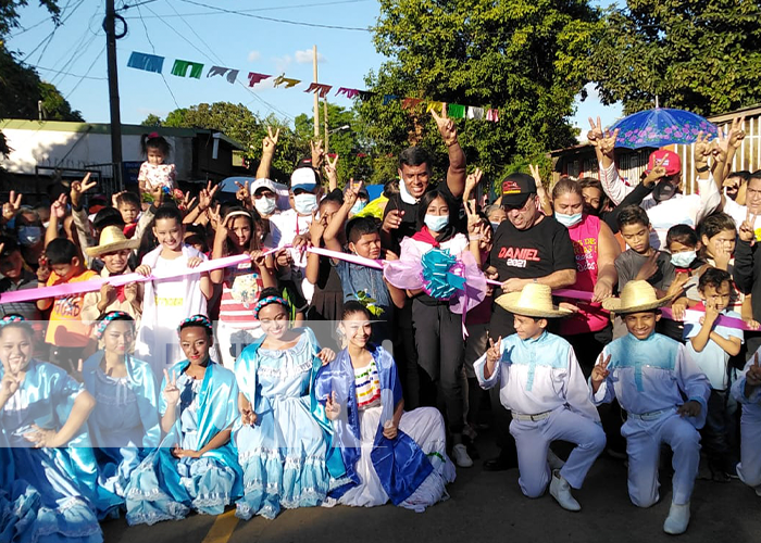 Pobladores del barrio Germán Pomares, del Distrito V de Managua, son los protagonistas de la inauguración de 10 cuadras de calles nuevas, quienes se mostraron agradecidos por este proyecto.