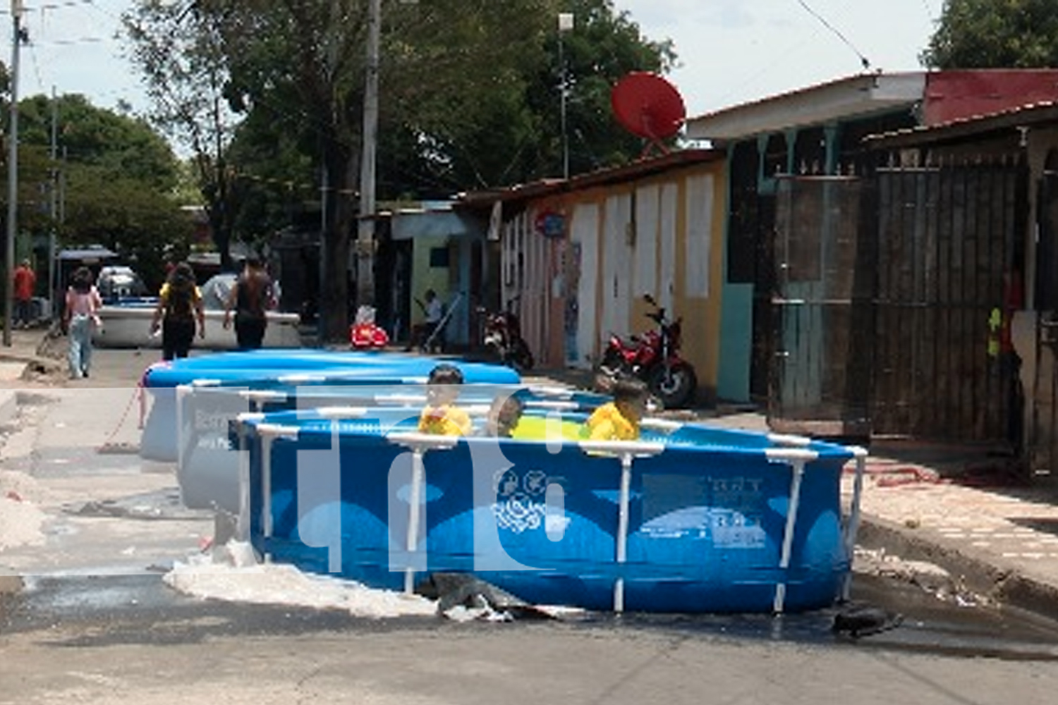 Cada Semana Santa, las calles del barrio Rubén Darío en Managua se llenan de vida, risas y música. Las familias del sector han convertido en tradición sacar piscinas a la calle como una forma asequible y divertida de combatir el calor en “chapuzones” y compartir en comunidad sus vacaciones.