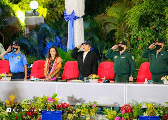El Presidente de Nicaragua, Daniel Ortega, durante el acto por la graduación de oficiales del Ejército de Nicaragua; habló del restablecimiento de relaciones con la República Popular China.