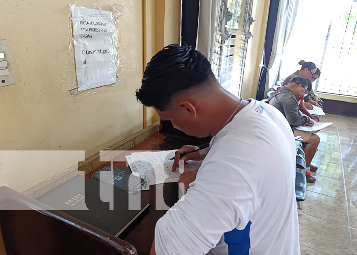 “Aquí tenemos el servicio de trámite de pasaporte, visa de salida, movimiento migratorio. La primera gestión es hacer la cita de forma digital, es decir, ingresar al sitio web cita.min.gob.ni y luego visitar las instalaciones de la sucursal del Servicio de Trámite Migratorio (SERTRAMI) ubicado aquí en Ciudad Sandino. Nuestro horario de atención es de lunes a sábado, de 8:00 a.m. a 5:00 p.m.”.