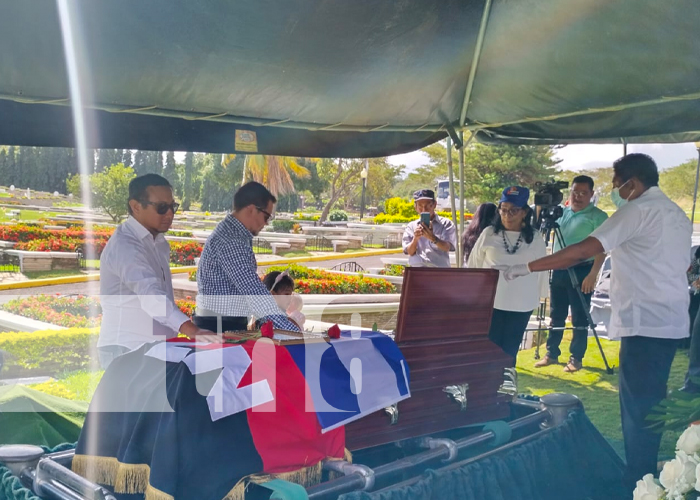 #AHORA || Familiares y compañeros de trabajo dieron el último adiós a don Teatino Santana, director del noticiero radial "¿Qué pasa?", que se transmitió a través de Radio Sandino. Santana fue enterrado en el cementerio Sierras de Paz en Managua. 🌹🎙️ pic.twitter.com/1UeNQktO4V